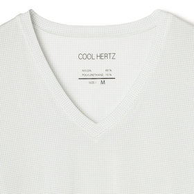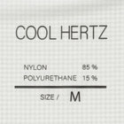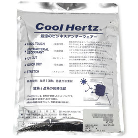 COOL HERTZ:クールヘルツは、人体や衣類内のこもった熱(遠赤外線)を放出する機能と、外(太陽)からの熱(遠赤外線)を遮断する機能を併せ持ち、その機能で人体を冷却します。■接触冷感:特殊な人工鉱石を使用した塗料でプリント加工を施すことにより、人体から熱を放出し太陽からの熱を遮断し冷却を持続します。洗濯をしてもプリントが落ちることがなく、効果は半永久的に持続します。■消臭機能:臭いの気になる部分に消臭テープを使用し、臭いの主成分を吸収・中和します。■UVカット機能:太陽からの紫外線や赤外線を遮断し日焼けを防止します。■吸水速乾:吸水速乾性のある素材を使用し、さらっとした着心地を保ちます。◆Q:どうやって熱(遠赤外線)が放出されるのか?A:人体の熱(遠赤外線)をこの人工鉱石の入ったプリントで吸収、通すことにより遠赤外線に交換して放出する。◆Q:人工鉱石とは?A:金属シリコンが主成分で放熱金属など数種類の鉱石をまぜた物。熱伝導率の高い人口鉱石です。◆Q:なぜ外からの熱(遠赤外線)を遮断、軽減できるのか?A:人体から放出された熱(遠赤外線)と外(太陽)から発生する熱(遠赤外線)は、同じ周波数帯の赤外線のため、お互いがぶつかり消滅することにより熱(遠赤外線)を遮断もしくは軽減する。