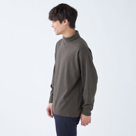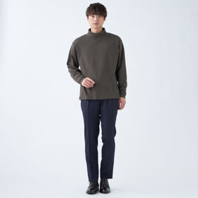 ゆとりを持たせたシルエットをベースに首にフィットしすぎないデザイン。ポリウレタンの入ったストレッチ素材でソフトな風合いがリラックス感を強調。