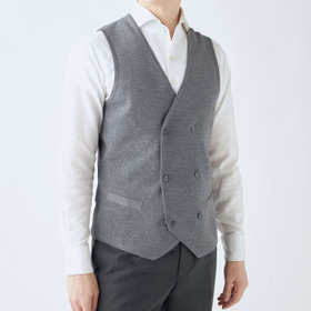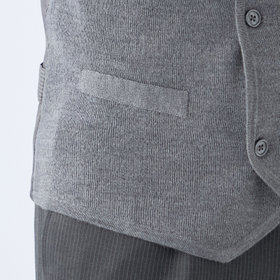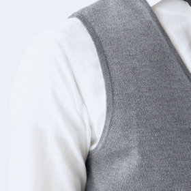 わたの段階で抗ピル加工を施しているため、毛玉が出来づらく、家庭洗濯可能なイージーケア商品。表地は高級感あるミラノリブ組織で、しっかりとしたクラシックなダブルニットジレに仕上げました。