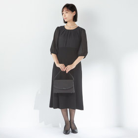 清涼素材を使ったワンピースは、ギャザー袖の効果で