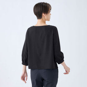 袖口ゴム仕様でブラウジング可能。バングルなどのアクセサリーで楽しめます。1枚着からジャケットインまでデイリーにお使いいただけるアイテムです。