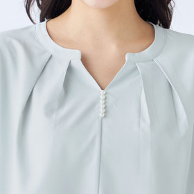 胸元に並ぶパールボタンがシンプルなデザインにアクセントをプラス。