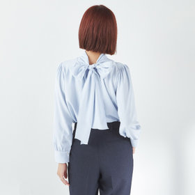 前後を逆にして着れば、バックリボンデザインにも。結び方は自由だから、オリジナルのアレンジも可能です。