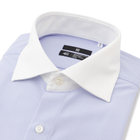 クレリックワイドドレスシャツは、ノーネクタイやタイドアップなど幅広い着こなしを提案します。