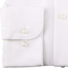 一部の商品では、高級シャツで使われる天然貝をくりぬいた釦を使用しています。天然貝釦とは白蝶貝、黒蝶貝、などの貝殻を原料とし、一個ずつ手作業で貝をくりぬいて作っています。天然貝は形状(凹凸感)・風合い・色・が一個ずつ異なり、同じものが存在しません。※形状(凹凸感)等により、釦の一部が「欠け」「割れ」ているように見えますが、天然貝釦の特徴になります。