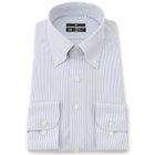 誠実なネイビーのストライプ柄に、ノータイでも襟元が崩れないボタンダウン。常に整った襟元が、スマートな印象を演出します。