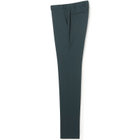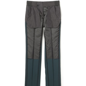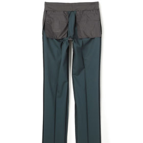 (5)膝から裾口にかけて細くなるテーパードパンツ。