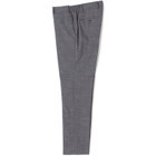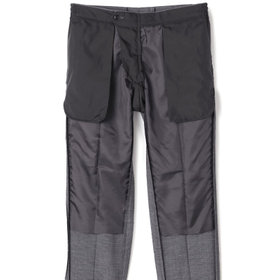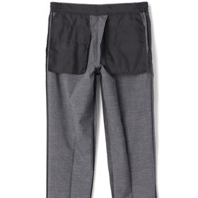 (5)膝から裾口にかけて細くなるテーパードパンツ。