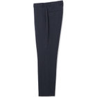 (5)膝から裾口にかけて細くなるテーパードパンツ。