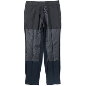 スーツやパンツのサイズ確認は、直立姿勢だけではなく、椅子に座った時の負荷。しゃがんだ時の負荷を考えたサイズ選びを必ずお願いします。ヒップ・太もも部分の生地にゆとりがない場合等の無理なサイズ選びは、体型や動きに関係なく生地や糸に負荷がかかり、「縫い目のほつれ」「生地の破れ」が起こります。また、両太もも同士が当たる場合や生地にゆとりがない場合、股ズレで生地が破れる可能性がございます。実店舗での商品確認・試着にて正しいサイズの購入をお勧めいたします。サイズが合わない事による「縫い目のほつれ」「生地の破れ」は「返品」「交換」「無償修理」はいたしかねます。また商品状態により修理が出来ない場合もございます。