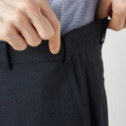 スーツやパンツのサイズ確認は、直立姿勢だけではなく、椅子に座った時の負荷。しゃがんだ時の負荷を考えたサイズ選びを必ずお願いします。ヒップ・太もも部分の生地にゆとりがない場合等の無理なサイズ選びは、体型や動きに関係なく生地や糸に負荷がかかり、「縫い目のほつれ」「生地の破れ」が起こります。また、両太もも同士が当たる場合や生地にゆとりがない場合、股ズレで生地が破れる可能性がございます。実店舗での商品確認・試着にて正しいサイズの購入をお勧めいたします。サイズが合わない事による「縫い目のほつれ」「生地の破れ」は「返品」「交換」「無償修理」はいたしかねます。また商品状態により修理が出来ない場合もございます。