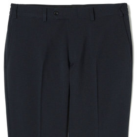 スーツやパンツのサイズ確認は、直立姿勢だけではなく、椅子に座った時の負荷。しゃがんだ時の負荷を考えたサイズ選びを必ずお願いします。ヒップ・太もも部分の生地にゆとりがない場合等の無理なサイズ選びは、体型や動きに関係なく生地や糸に負荷がかかり、「縫い目のほつれ」「生地の破れ」が起こります。また、両太もも同士が当たる場合や生地にゆとりがない場合、股ズレで生地が破れる可能性がございます。実店舗での商品確認・試着にて正しいサイズの購入をお勧めいたします。サイズが合わない事による「縫い目のほつれ」「生地の破れ」は「返品」「交換」「無償修理」はいたしかねます。また商品状態により修理が出来ない場合もございます。