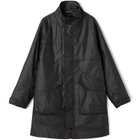 高密度に織り込まれたツイル素材に小松マテーレのBJ加工を施した、シワに強く形状保持性のあるスタンドコート。撥水性とストレッチ性を兼ね備え、ストレスフリーな着心地を実現します。光沢感のあるヴィンテージ調仕上げは、オイルドジャケットのような風合いで存在感抜群。背中には中綿キルティングを入れて防風性を高め、サイドスリットとファスナーポケットで実用性も充実。ビジネスから休日まで、都会的に着こなせる一着です。