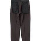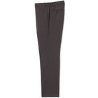 (5)膝から裾口にかけて細くなるテーパードパンツ。