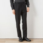 (5)膝から裾口にかけて細くなるテーパードパンツ。