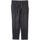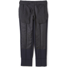 (5)膝から裾口にかけて細くなるテーパードパンツ。