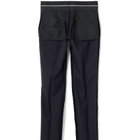 スーツやパンツのサイズ確認は、直立姿勢だけではなく、椅子に座った時の負荷。しゃがんだ時の負荷を考えたサイズ選びを必ずお願いします。ヒップ・太もも部分の生地にゆとりがない場合等の無理なサイズ選びは、体型や動きに関係なく生地や糸に負荷がかかり、「縫い目のほつれ」「生地の破れ」が起こります。また、両太もも同士が当たる場合や生地にゆとりがない場合、股ズレで生地が破れる可能性がございます。実店舗での商品確認・試着にて正しいサイズの購入をお勧めいたします。サイズが合わない事による「縫い目のほつれ」「生地の破れ」は「返品」「交換」「無償修理」はいたしかねます。また商品状態により修理が出来ない場合もございます。