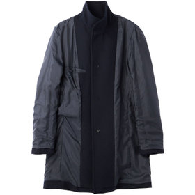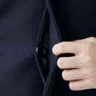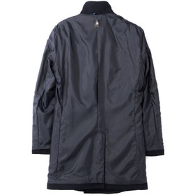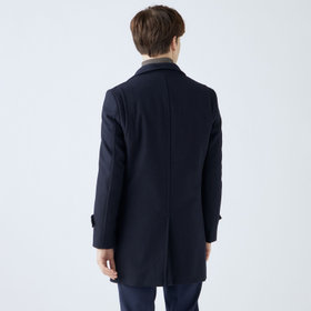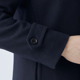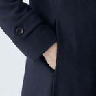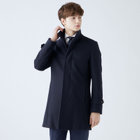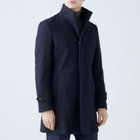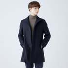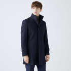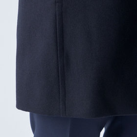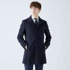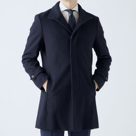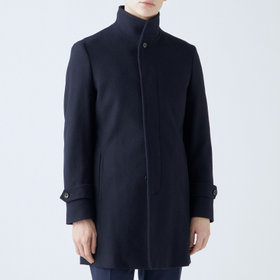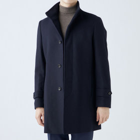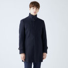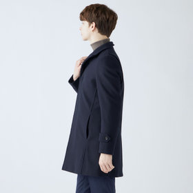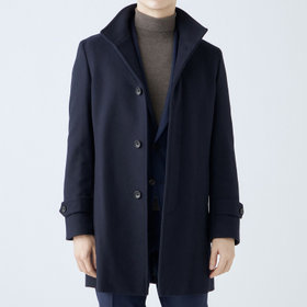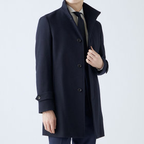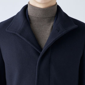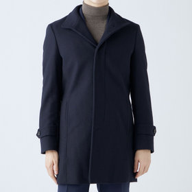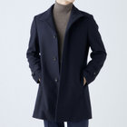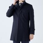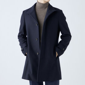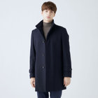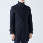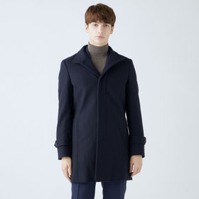 スタンドカラーで体のラインを綺麗に見せるシルエットです。オン・オフ兼用で着まわし出来る実用性コートです。
