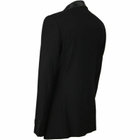 プレミアムブラック+super110'sの1釦サテンショールカラーシングル0タックパンツスーツです。Super100'sの極細高級原毛を使用し濃染加工を施したスッキリとした深みのあるブラックとナチュラルストレッチ加工による快適な着心地感。BLACK LINEのジャケットは細めのシルエットでショート丈。体に沿った小さなアームホール&細身のスリーブと絞りの効いたウエストラインに直線的なフロントラインと緩やかなスラントポケット。パンツは股上浅めのタイトシルエット。スリム・タイト・直線的をキーワードにシルエットを楽しみながらも着やすさ・動きやすさを体感できる仕上がりになっています。スーツセレクトは生産からデザイン、流通まで徹底し高品質なスーツを明快な価格設定とバリエーションから選ぶ事ができ、ファッションとファンクション(機能性)を融合させ都会的に洗練されたスーツです。