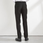 ゴージラインが高めのナローラペル。パンツは股上浅めのタイトシルエット。