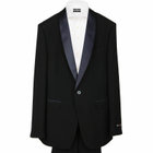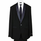 1釦サテンショールカラーシングル0タックパンツスーツです。BLACK LINEのジャケットは細めのシルエットでショート丈。体に沿った小さなアームホール&細身のスリーブと絞りの効いたウエストラインに直線的なフロントラインと緩やかなスラントポケット。パンツは股上浅めのタイトシルエット。スリム・タイト・直線的をキーワードにシルエットを楽しみながらも着やすさ・動きやすさを体感できる仕上がりになっています。スーツセレクトは生産からデザイン、流通まで徹底し高品質なスーツを明快な価格設定とバリエーションから選ぶ事ができ、ファッションとファンクション(機能性)を融合させ都会的に洗練されたスーツです。