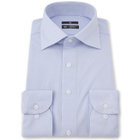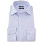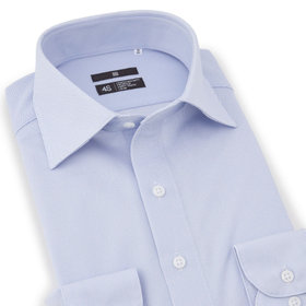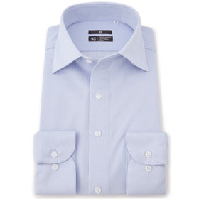 爽やかなサックスのドビー織に、ネクタイスタイルを引き立てるワイドカラーデザイン。ブラックラインのシャープなシルエットが、スーツスタイルをより洗練された印象に仕上げます。
