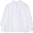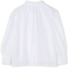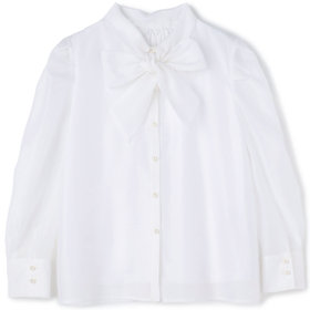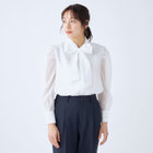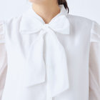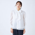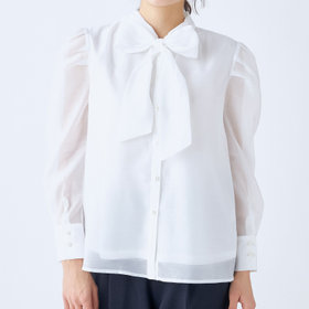 ベーシックなデザインの前開きシャツ&ボウタイをレディライクにデコレーション。