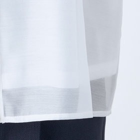 前立てと幅広カフスには玉パール釦をあしらい上品ムードを底上げ