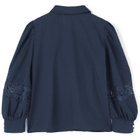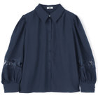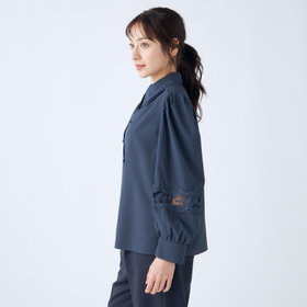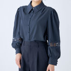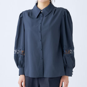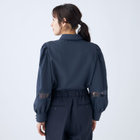 肩幅をキュッと狭め、肩先にタックを寄せたパフ袖デザイン。