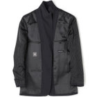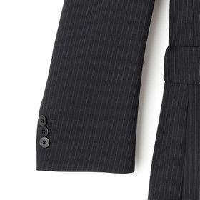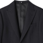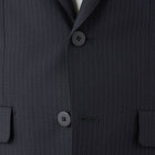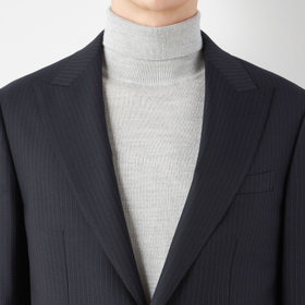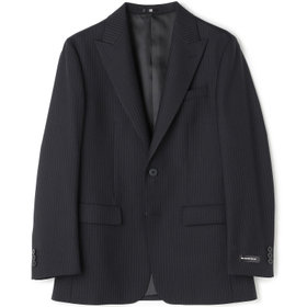エレガントな印象のピークドラペルが特徴のダークネイビージャケット。