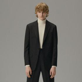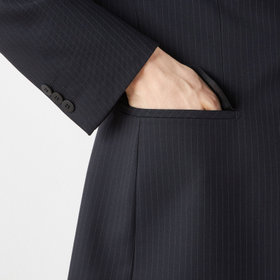 約9.5cmラペル・素材(表地)ポリエステル60%/ウール40%・(裏地)ポリエステル100%・センターベント・【着用シーズン:秋冬】