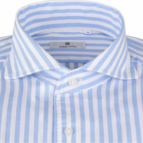 ホリゾンタルワイドワンピースカラードレスシャツは、ノーネクタイやタイドアップなど幅広い着こなしを提案します。CLASSICO TAPEREDシャツは肩幅はシャツの肩が落ちないように狭く設定し肩を内側に入れ、袖山を高くし、肩のラインに沿うように、緩やかな曲線ヨ-クにしました。