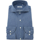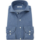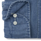 CLASSICO TAPEREDシャツは肩幅はシャツの肩が落ちないように狭く設定し肩を内側に入れ、袖山を高くし、肩のラインに沿うように、緩やかな曲線ヨ-クにしました。