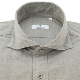 スナップダウンホリゾンタルワイドドレスシャツは、ノーネクタイやタイドアップなど幅広い着こなしを提案します。CLASSICO TAPEREDシャツは肩幅はシャツの肩が落ちないように狭く設定し肩を内側に入れ、袖山を高くし、肩のラインに沿うように、緩やかな曲線ヨ-クにしました。