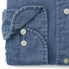 CLASSICO TAPEREDシャツは肩幅はシャツの肩が落ちないように狭く設定し肩を内側に入れ、袖山を高くし、肩のラインに沿うように、緩やかな曲線ヨ-クにしました。