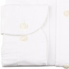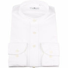 バンドカラードレスシャツは、CLASSICO TAPEREDシャツは肩幅はシャツの肩が落ちないように狭く設定し肩を内側に入れ、袖山を高くし、肩のラインに沿うように、緩やかな曲線ヨ-クにしました。