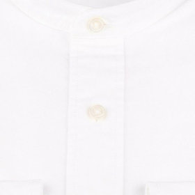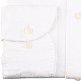 一部の商品では、高級シャツで使われる天然貝をくりぬいた釦を使用しています。天然貝釦とは白蝶貝、黒蝶貝、などの貝殻を原料とし、一個ずつ手作業で貝をくりぬいて作っています。天然貝は形状(凹凸感)・風合い・色・が一個ずつ異なり、同じものが存在しません。※形状(凹凸感)等により、釦の一部が「欠け」「割れ」ているように見えますが、天然貝釦の特徴になります。
