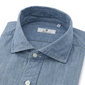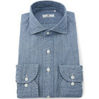 CLASSICO TAPEREDシャツは肩幅はシャツの肩が落ちないように狭く設定し肩を内側に入れ、袖山を高くし、肩のラインに沿うように、緩やかな曲線ヨ-クにしました。