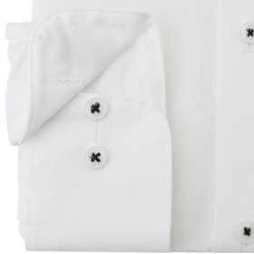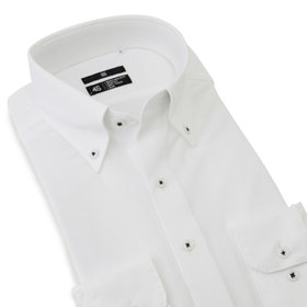 清潔感あふれるホワイトのドビー織りに、ノータイでも襟元が崩れないボタンダウン。常に整った襟元が、スマートな印象を演出します。