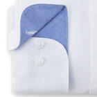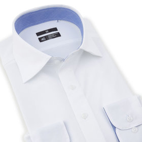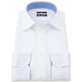 【発送在庫あり】【WEB限定】【BLACK LINE】ワイドカラーワイシャツ/ホワイト×ドビー/襟袖裏別布:ブルー×プレイド/「4S」スーパーノンアイロン・ストレッチ