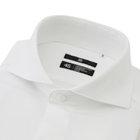 ホリゾンタルワイドドレスシャツは、ノーネクタイやタイドアップなど幅広い着こなしを提案します。