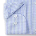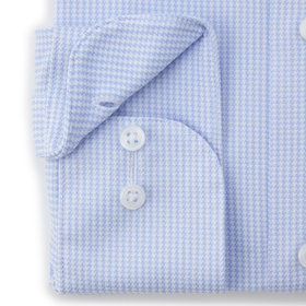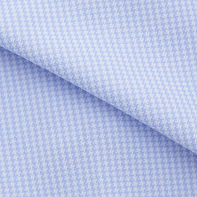 爽快なブルーのハウンドトゥース柄に、首元をすっきりと見せるワイドカラーデザイン。ビジネスシーンに自信のあるVラインを演出します。