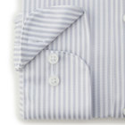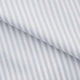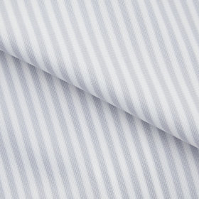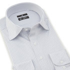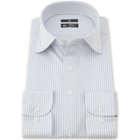 ネイビー&ホワイトのストライプ柄に、スーツスタイルと相性抜群のワイドカラーデザイン。ブラックラインのシャープなシルエットが、スーツスタイルをより洗練された印象に仕上げます
