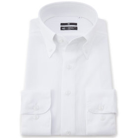 ホワイトのドビーストライプ柄に、ノータイでも襟元が崩れないボタンダウン。常に整った襟元が、清潔感のあるスマートな印象を演出します。