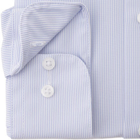 爽快なブルーのストライプ柄に、ノータイでも襟元が崩れないボタンダウンをマッチング。常に整った襟元が、ビジネスシーンに相応しい誠実さを演出します。