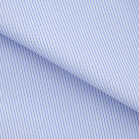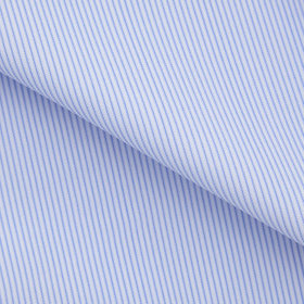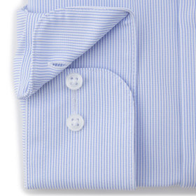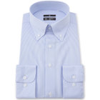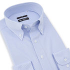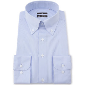 ブルーのストライプ柄に、ノータイでも襟元が崩れないボタンダウン。常に整った襟元が、清潔感のあるスマートな印象を演出します。