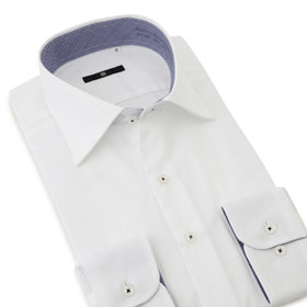 ワイドカラードドレスシャツは、ノーネクタイやタイドアップなど幅広い着こなしを提案します。