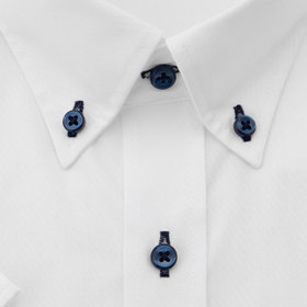 一部の商品では、高級シャツで使われる天然貝をくりぬいた釦を使用しています。天然貝釦とは白蝶貝、黒蝶貝、などの貝殻を原料とし、一個ずつ手作業で貝をくりぬいて作っています。天然貝は形状(凹凸感)・風合い・色・が一個ずつ異なり、同じものが存在しません。※形状(凹凸感)等により、釦の一部が「欠け」「割れ」ているように見えますが、天然貝釦の特徴になります。