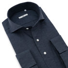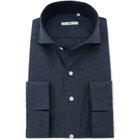 シャツは過剰な部分は排除し、機能を突き詰めたシンプルで快適なエレガントなシルエット。アームホールを細くすることにより、袖回りの余分なたるみをそぎ取り、美しいシルエットと動きやすさを併せたスリムアームを採用。立体的デザインで体になじむ型にする為、前身頃に対し後身頃を大きく取り、脇縫い部分を前に出すことで、動きやすさと適度なフィット感を出し、だぶつかず綺麗なシルエットを採用しています。