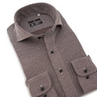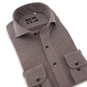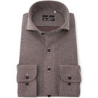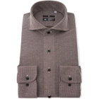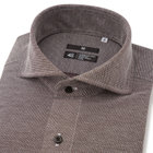落ち着きのあるブラウンのドビー織りの、シャープな首元を演出するホリゾンタルカラーデザイン。ブラックラインのシャープなシルエットが、都会的で洗練された佇まいを叶えます。